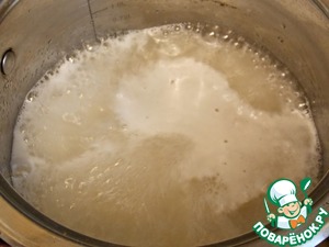 • В кастрюлю всыпать сахар, влить кипяченую воду и довести до кипения.