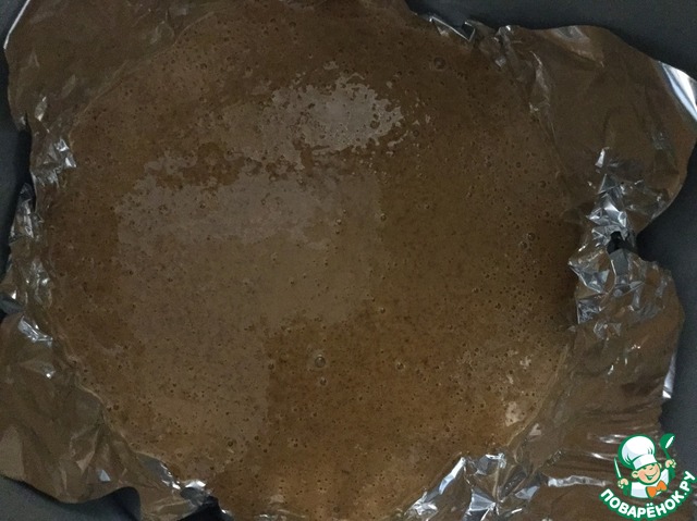 Теперь вот такую массу с пузырьками выливаю в мультю, смазав предварительно маслом. Я кладу внутрь чаши фольгу, чтобы удобнее было вытаскивать. Ставлю программу "Выпечка" на 45 минут. По окончанию программы дать постоять суфле минут 15.