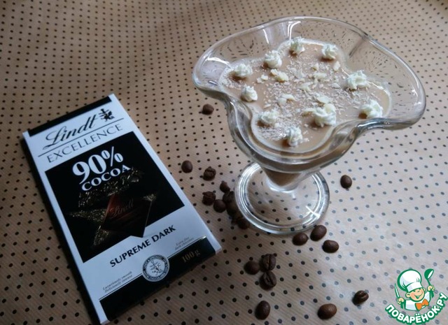 Рекомендую украсить его взбитыми сливками и посыпать тёртым шоколадом.