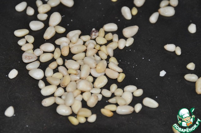 Кедровые орехи подрумяниваем на сухой сковороде.