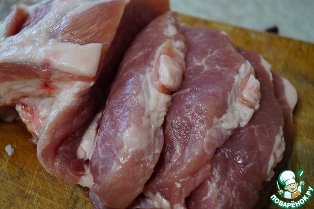 Взять кусочек в меру жирной свинины, весом 1 кг.