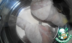 Голени моем, заливаем водой, ставим вариться. Не забываем снять пенку после закипания.
