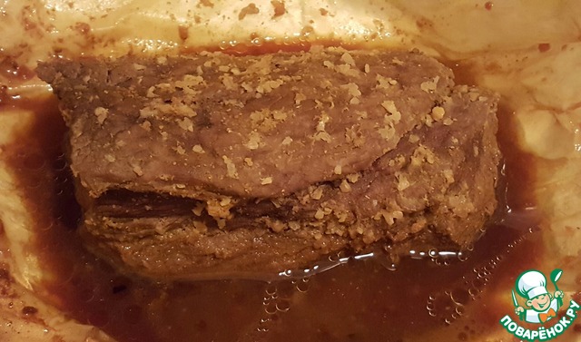 Вот такой кусочек мяса получился после запекания.