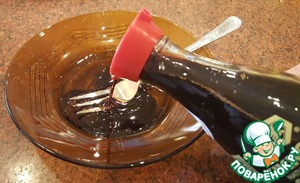 Приготовить заправку. Смешать оливковое масло, соевый соус, лимонный сок и немного мёда и взбить вилкой до однородности.