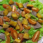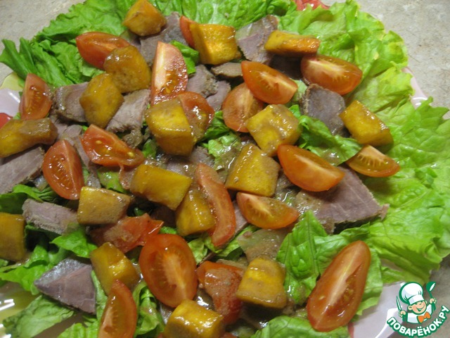 Сегодня приготовила "из того, что было", - говядинка запеченная, помидоры черри свежие, тыкву потушила на сковороде в заправке, ну и свежий салат, - почти как твой