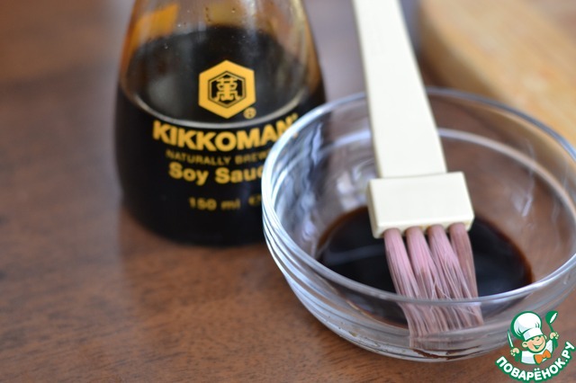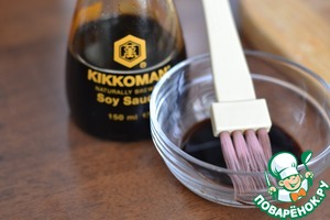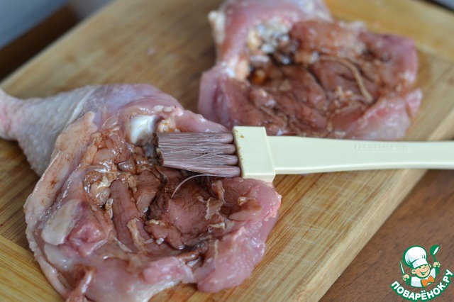 Каждую ножку смазать соевым соусом Киккоман при помощи кисточки. -