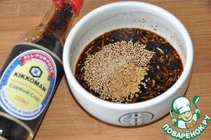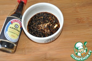 Для приготовления берём соевый соус. Я использовала Kikkoman. -
