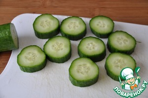 Огурец моем, режем шайбами толщиной около 1 см. -