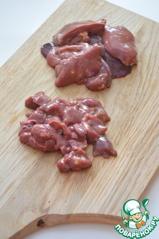 Куриную печенку промойте, обсушите и нарежьте мелко.
