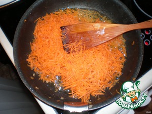 Натереть морковь тонкой соломкой и обжарить на растительном масле.