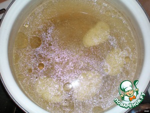 Почистить картофель. Я обычно сначала забрасываю несколько целых картошек. Потом их вынимаю, разминаю, и обратно в супчик - так он становится гуще.