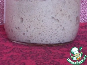 Добавить одну чайную ложку сахара и ржаной муки до густоты сметаны. Поставить бродить при комнатной температуре ( где-то двое- трое суток). Готовую закваску хранят в холодильнике, на нижней полке, на дверце, периодически подкармливая.