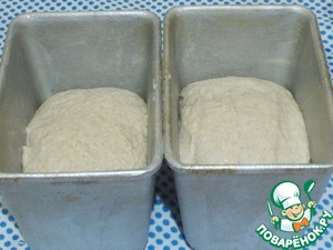Затем тесто округляем и кладем в смазанную форму. У меня такие две не большие формочки для хлеба. Оставляем тесто подходить ( я ждала четыре с половиной часа).