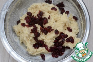 • Добавить сушеную клюкву (вишню) и еще раз перемешать, чтобы распределить клюкву по всему тесту.