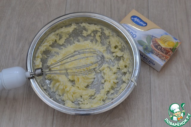 • Взбить масло ТМ Милье комнатной температуры с сахаром до кремовой светлой консистенции.