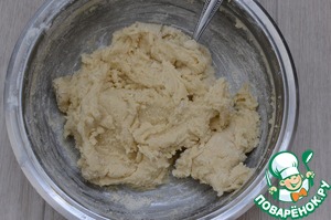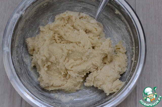 • Добавить всю муку и перемешать так, чтобы тесто слиплось в комок.