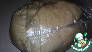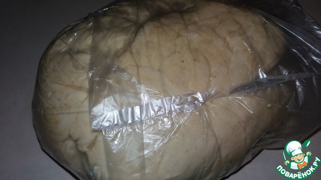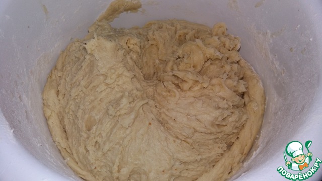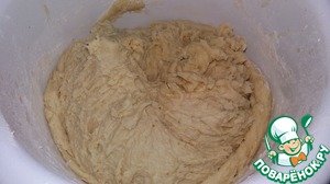 Готовое тесто-крутое и жирное. Из миски вынимается, оставляя только масляный налет на стенках.