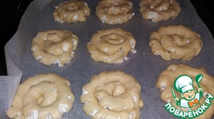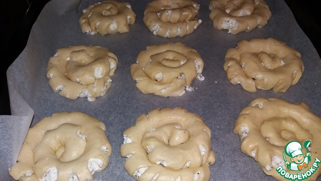 Теперь скрутить полученный жгутик спиралькой. Выкладываем на противень, застеленный бумагой.