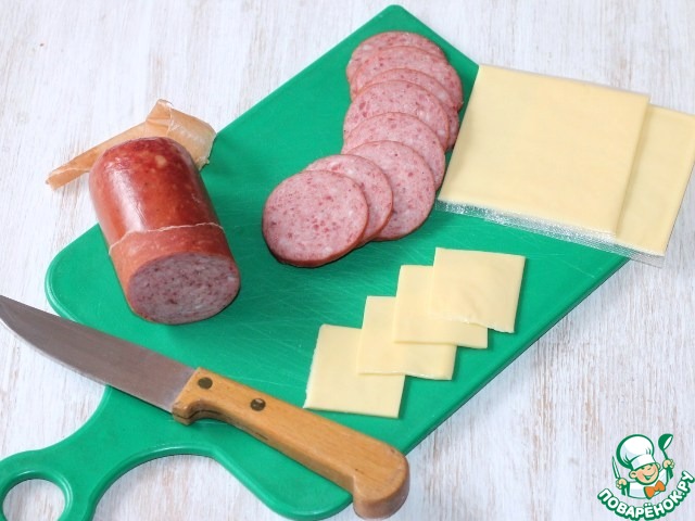 1. Очень тонко нарезать 19 кусочков колбасы.