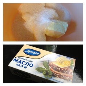 Масло комнатной температуры взбить в пышную массу с сахаром и ванилином.