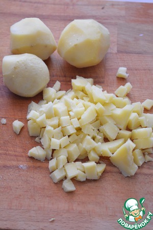 Нарежьте отварной картофель мелкими кубиками