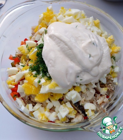 Добавьте по вкусу соль и заправьте майонезом