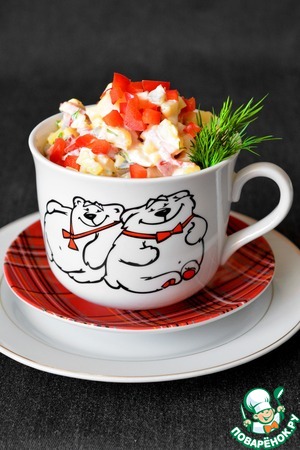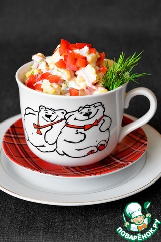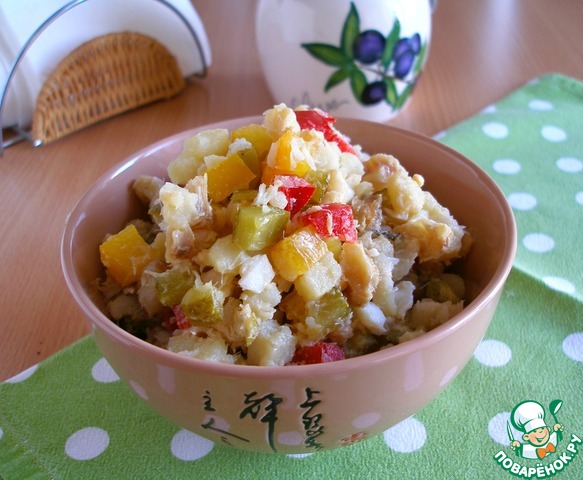 Сытный и очень вкусный салат. Я раньше не часто готовила рыбные салаты (за исключением сельди под шубой и "Мимозы"). А недавно попробовала в гостях этот салат. Мне очень понравилось! А самое главное - понравилось мужу!