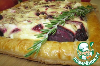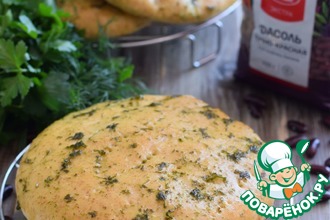 Смазать форму маслом и присыпать мукой и сразу же выложить тесто, равномерно распределяя. Оставить тесто на 15 минут. Тесто должно быть как на густые оладьи, если вы заметили что тесто гуще, то можно добавить немного воды. Затем выпекать в духовке 20 - 30 мин до золотистого цвета.