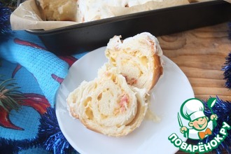 Тесто: все делаем в следующей последовательности: яйцо + сливки + разрыхлитель теста + цедра половины лимона + сахар - все тщательно перемешать. Добавить кокосовую стружку -перемешать!!! Добавить ванилин и манку - перемешать.