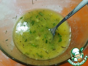 В оставшееся растопленное масло добавить порубленный чеснок и травки.