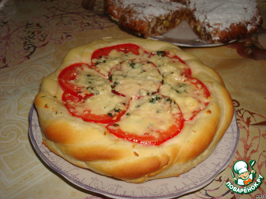 На слегка посыпанной мукой поверхности раскатать тесто в диск толщиной 3 -4 мм.