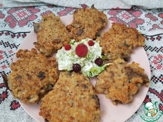 Рецепт «Гречневые оладьи с грибами и соусом»: