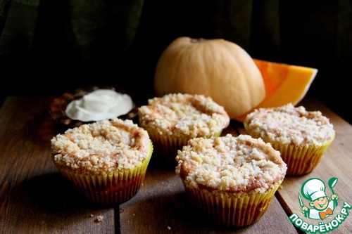 Тыквенные кексы со сливочным сыром и штрейзелем. Продолжаю приобщаться ко вкусу тыквы. Ищу вкусные рецепты с тыквой, чтобы стать ее фанатом. ;-) Этот рецепт мне понравился по всем параметрам: специи заглушают запах тыквы, сладость и сливочный сыр прекрасно вписываются в структуру теста, да и готовить их было интересно.