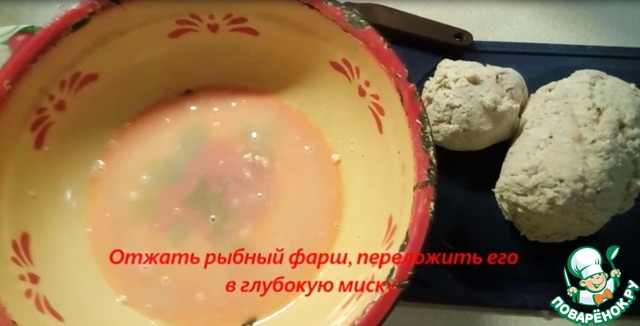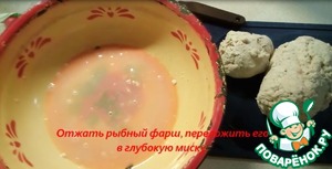 Отжать рыбный фарш, переложить его в глубокую миску.