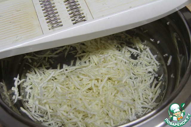Нарезать тонко корень сельдерея (лучше на специальной терке)
