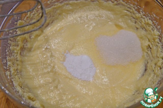 Всыпать разрыхлитель, соль и ванильный сахар (или ванилин).