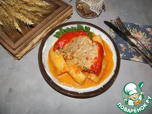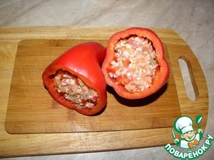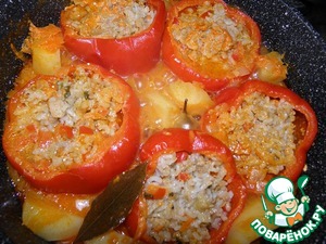Наполнить фаршем перцы не плотно, рис при тушении еще увеличится в объеме