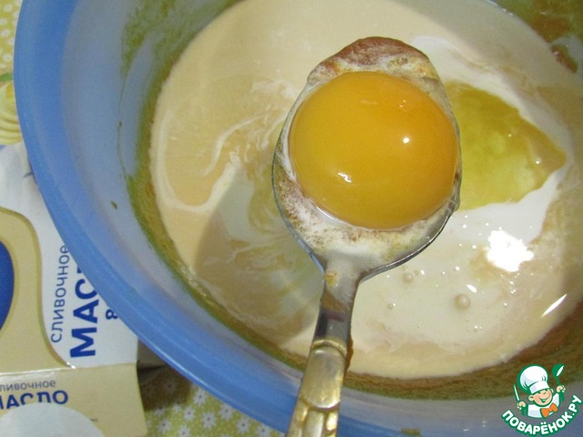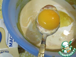 Добавить молоко, сливки и яйца. Перемешать до однородности.