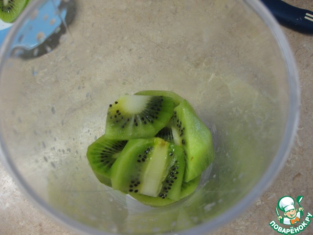 Киви очистить, нарезать кусочками и поместить в чашу блендера