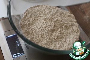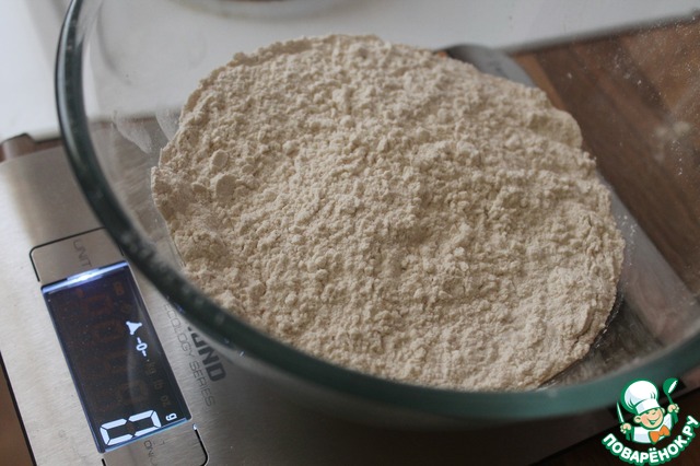 • Обе муки просеиваем в миску и отмеряем нужное количество с помощью весов или столовой ложки.