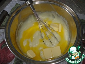 В еще горячий крем добавляем сливочное масло и перемешиваем венчиком до однородной массы.