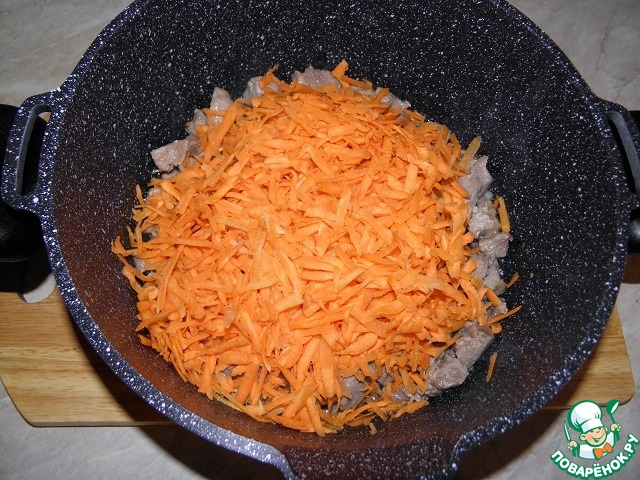 - Морковь (по вкусу, должно быть приблизительно одинаковое кол-во лука, моркови и мяса( мяса чуть больше)) — 2 шт
