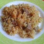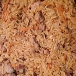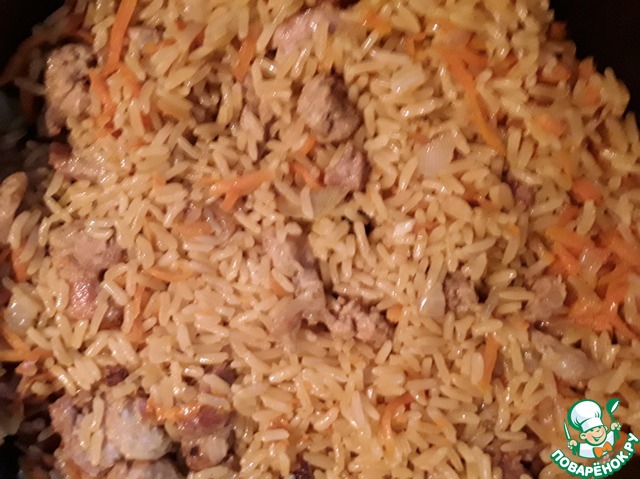 Я такого плова не встречала, обычно на 0,5 кг. мяса кладут 1 кг. риса.