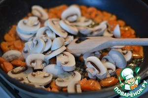 Добавить к моркови. Перемешать и продолжать жарить. -