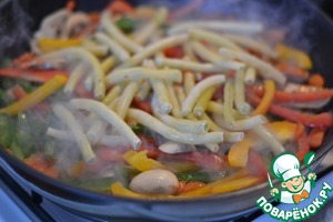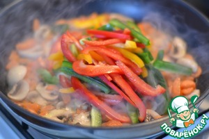 Перемешать и обжарить 2 минуты. Снять с огня, накрыть крышкой. -