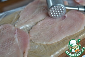 Куриные грудки нарезать на отбивные.