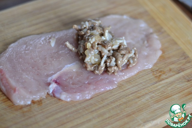 На каждую отбивную выкладываем начинку.