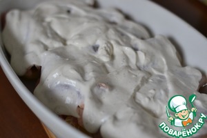 Выкладываем сметанную смесь, сверху на каждый рулетик.
