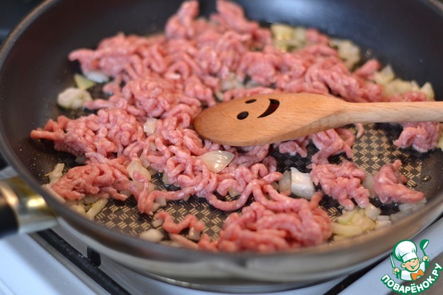 Добавить фарш. Обжарить. Поперчить. -