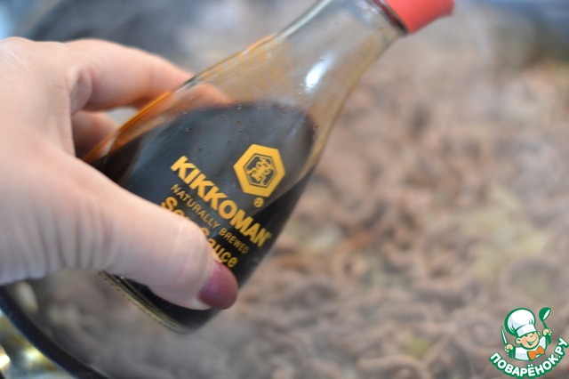 Добавить соевый соус "Киккоман".